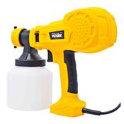 Possui jato com 3 opções de ajuste (vertical, horizontal e circular), chave de ajuste do volume de tinta e sistema HVLP (alto volume e baixa pressão), proporcionando maior rendimento e menor desperdício de tinta.